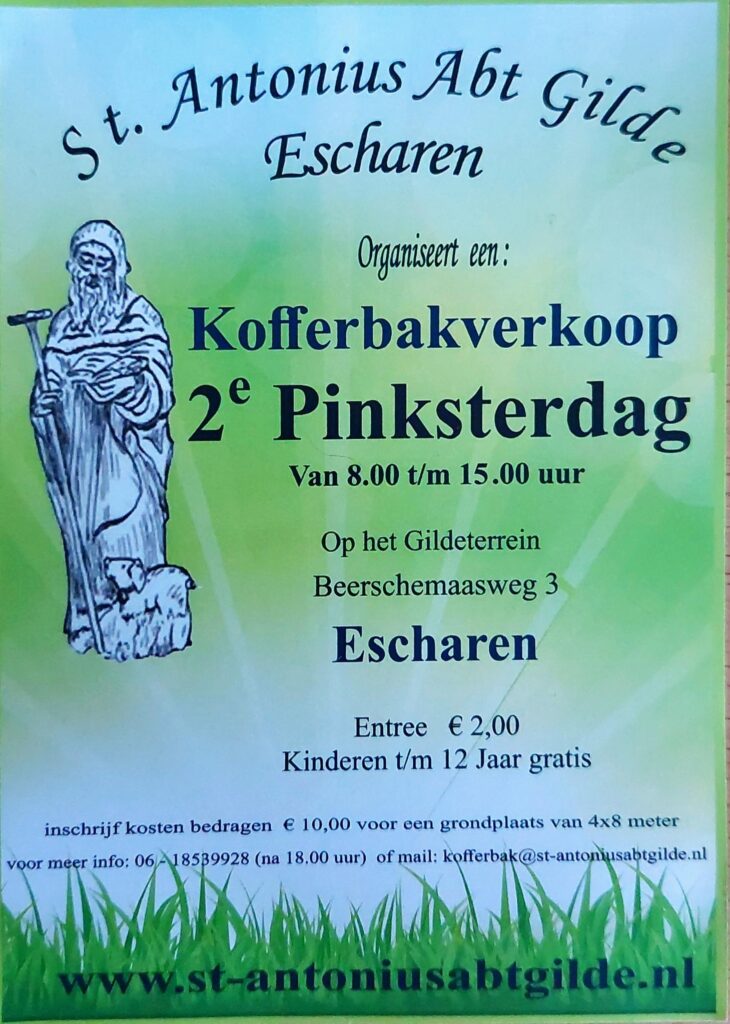 Op maandag 6 juni 2022 (2e Pinksterdag) organiseert het St. Antonius Abt Gilde Escharen hun jaarlijkse Kofferbakverkoop- Rommelmarkt op het gildeterrein gelegen aan de Beerschemaasweg 3, van 8.00 uur tot 15.00 uur.